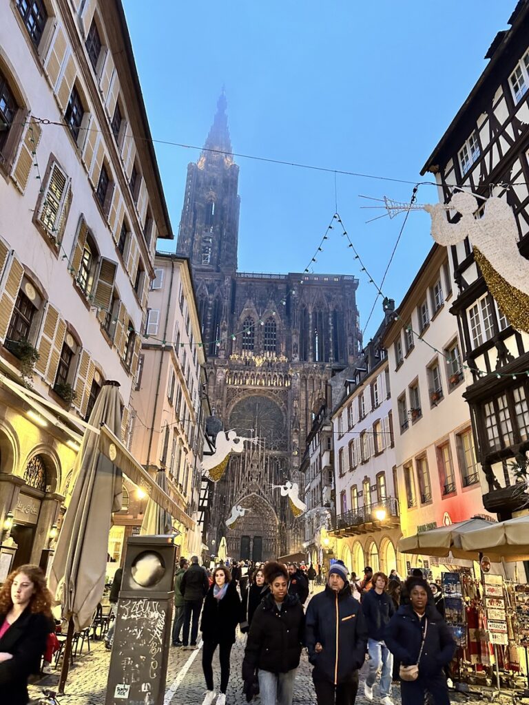 Η περιπατητική μας γνωριμία με την πόλη θα ξεκινήσει από την Πλατεία Κλεμπέρ, τη μεγαλύτερη κεντρική πλατεία, γεμάτη καταστήματα και καφέ. Σε μικρή απόσταση βρίσκεται η Πλατεία Γκούτενμπεργκ με το άγαλμα του εφευρέτη της τυπογραφίας, Ιωάννη Γκούτενμπεργκ, κοντά στον Καθεδρικό Ναό. Ο Καθεδρικός Ναός της Παναγίας του Στρασβούργου αποτελεί το απόλυτο σύμβολο της πόλης· θα θαυμάσουμε τη μεγαλοπρεπή γοτθική πρόσοψη και το περίφημο αστρονομικό ρολόι στο εσωτερικό του. Για όσους το επιθυμούν και έχουν τη φυσική αντοχή, προτείνεται η ανάβαση των 332 σκαλοπατιών στην πλατφόρμα θέασης για πανοραμική εικόνα της πόλης.